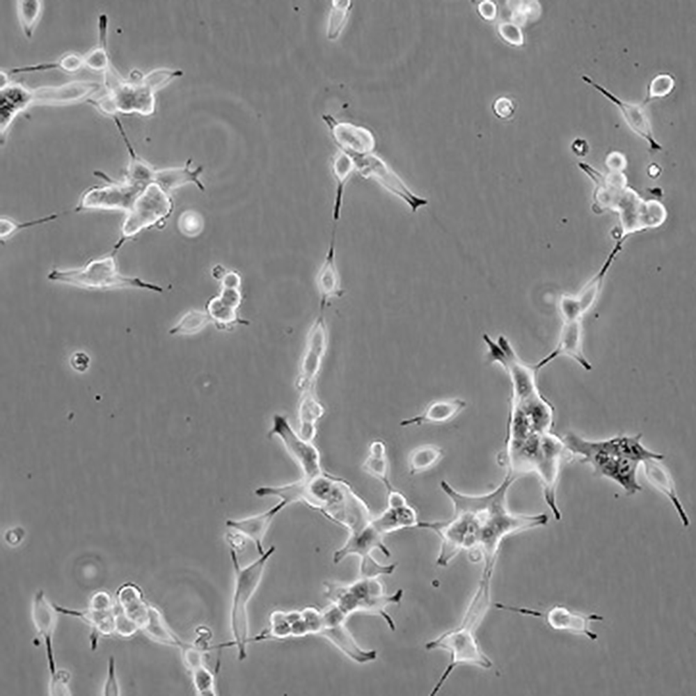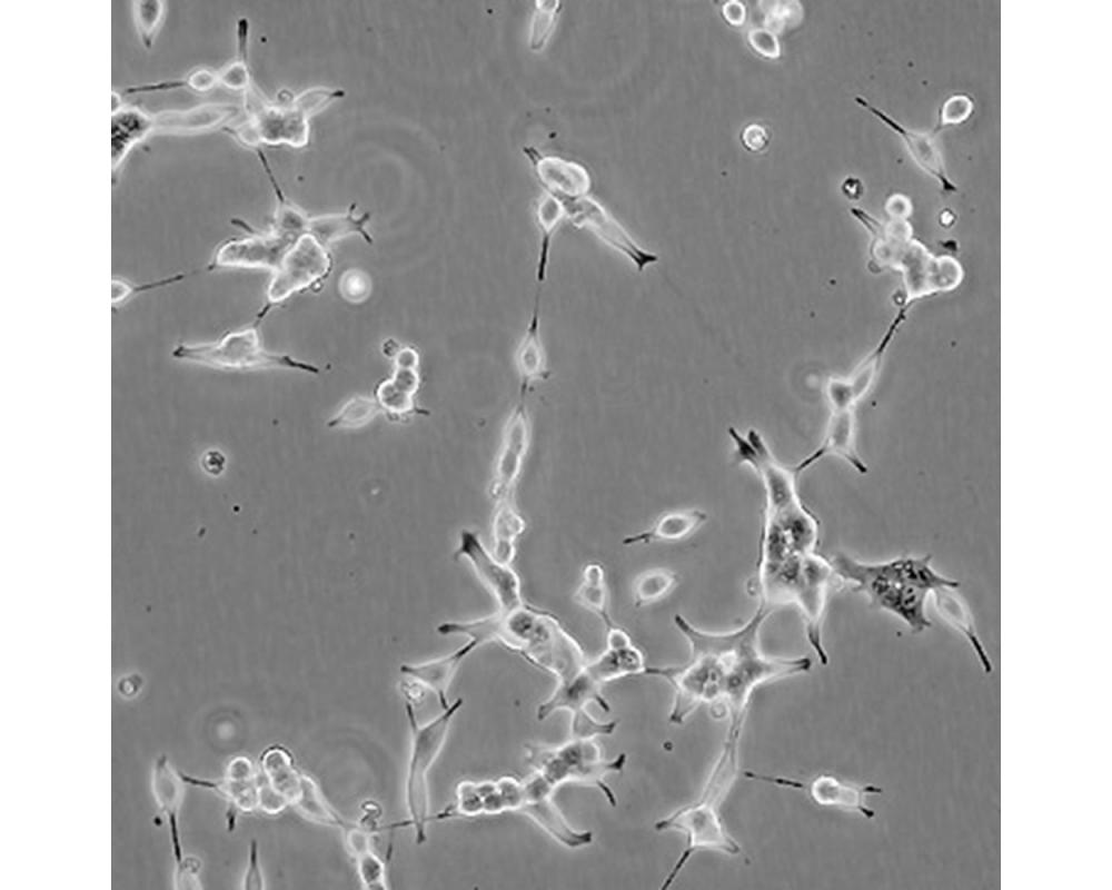 特征特性 人前列腺癌細胞LNCaP克隆FGC是從一位50歲白人男性(血型B+)的左鎖骨淋巴結針刺活檢中分離,該患者經確診為前列腺癌轉移。 這株細胞對5-α-二氫睪酮(生長調節子和酸性磷酸脂酶產物)有響應。 這株細胞并不形成一致的單層,而是形成集落,在傳代時可以用滴管反復吹吸打碎。 它們僅僅輕輕地吸附在基底上,不形成匯合,很快使培養基變酸。 生長很慢。 傳代后48小時內不應擾動。 當培養瓶封包后,多數細胞從培養瓶底分離,懸浮在培養基中。 收到后,在通常培養單層細胞的條件下培養24到48小時,以合細胞再貼壁。