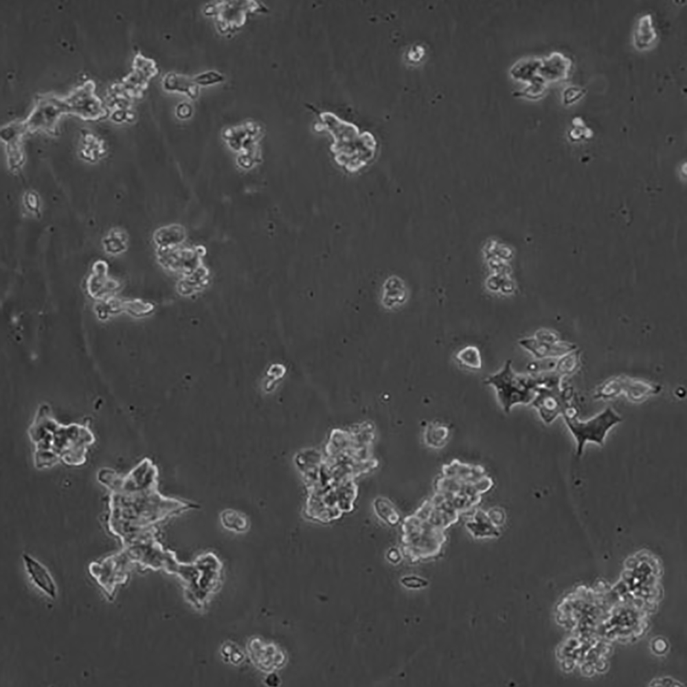 如果細胞密度達80%-90%,即可進行傳代培養。1. 棄去培養上清,用不含鈣、鎂離子的PBS潤洗細胞1-2次。2. 加2ml消化液(0.25%Trypsin-0.53mM EDTA)于培養瓶中,置于37℃培養箱中消化1-2分鐘,然后在顯微鏡下觀察細胞消化情況,若細胞大部分變圓并脫落,迅速拿回操作臺,輕敲幾下培養瓶后加少量培養基終止消化。3. 按6-8ml/瓶補加培養基,輕輕打勻后吸出,在1000RPM條件下離心4分鐘,棄去上清液,補加1-2mL培養液后吹勻。4. 將細胞懸液按1:2到1:5的比例分到新的含8ml培養基的新皿中或者瓶中。 |